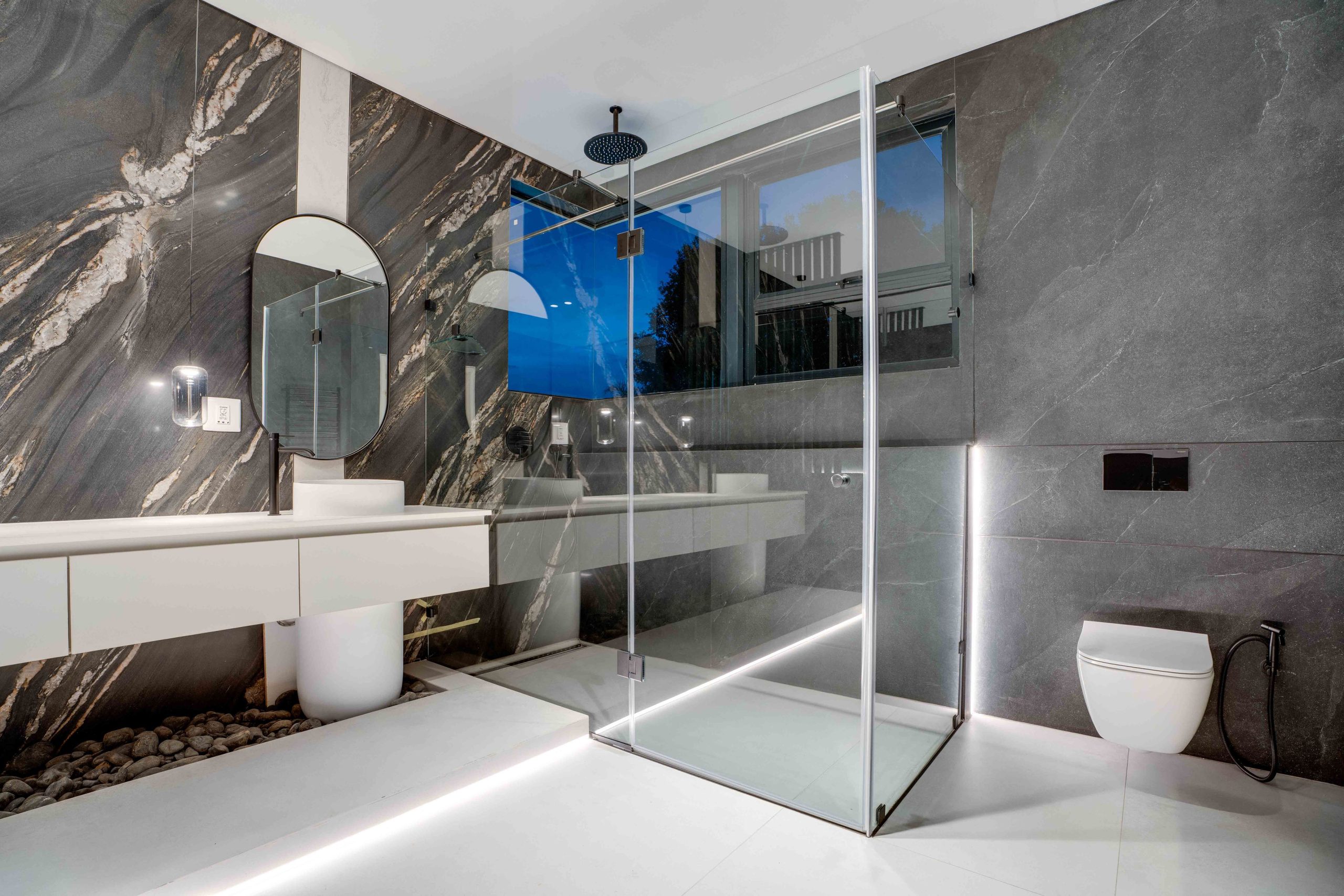 This modern luxury home in Ruimsig, Roodepoort, west of Johannesburg, embodies timeless elegance with carefully curated interior finishes. The design concept focuses on integrating high-quality materials and unique furniture and fixtures to create a sophisticated living space. Natural stone, rich woods, and sleek metals are used throughout, enhancing the luxurious atmosphere. Bespoke elements, including custom-designed furniture and statement lighting, add character and style. This home is designed to offer a blend of comfort, luxury, and contemporary aesthetics, setting a new standard in upscale living in its prestigious location.
